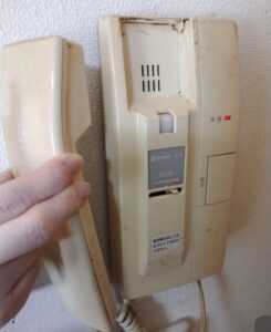 ☆ビフォー(旧)↓ ドアホン親機 モニターがなく訪問客の顔が見えません。