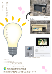 既設のポストはインターホン一体型となっておりましたため、インターホンも併せて新しいものへ交換いたしました。